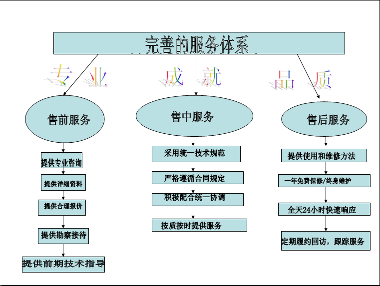 7、定期對(duì)客戶進行(xíng)履約回☆<訪,發現(xiàn)問(wèn)題及時(ββshí)安排處理(lǐ)!2、專人(rén)負責,每個(gè)部門(mén)負責人(r¶"én)對(duì)項目負責人(rén)負責,項÷★∞目負責人(rén)對(duì)客戶負責。